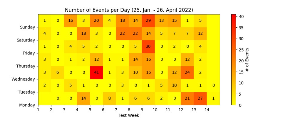 Die DIDIT-Bewertung ermöglichte es dem Kunden, eine Genauigkeit von 99% bei der Identifizierung unbefugter Drohnen zu erreichen, was ihr Verständnis für Perimeter Bedrohungen erheblich verbesserte. Aufgrund der signifikanten Präsenz von Drohnen, insbesondere an Sonntagen und Montagen, wurde der Bewertungszeitraum verlängert, um ein umfassendes Verständnis der Bedrohung zu erlangen. Wichtige Beobachtungen umfassten Spitzenaktivitäten an Wochenenden, ein Heatmap, die eine konzentrierte Drohnenpräsenz in der Nähe sensibler Bereiche zeigte, und Drohnenflüge, die länger als 30 Sekunden dauerten. Die Ergebnisse deuteten auf potenzielle Risiken von Freizeitmissbrauch bis hin zu kommerziellen Drohnenoperationen hin und hoben den dringenden Be darf an weiteren Sicherheitsmaßnahmen in der Nähe der Kontrollstation hervor.