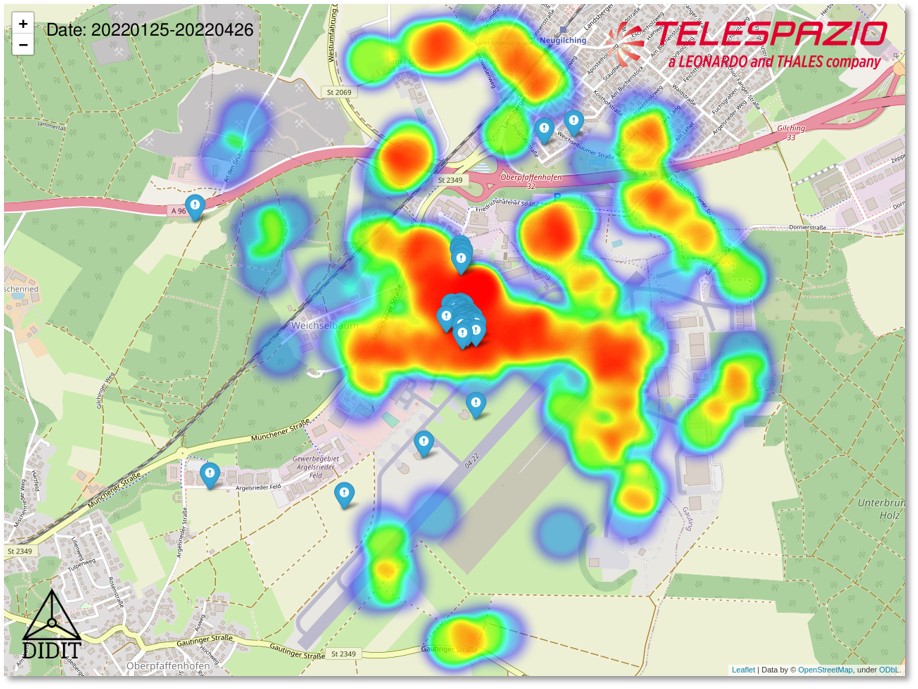 - Drohnen- und Pilotenortung: Das System identifizierte sowohl due Standorte der Drohnen als auch der Piloten mit präzisen Koordinaten und bot einen vollständigen Überblick über die potenzielle Bedrohung.