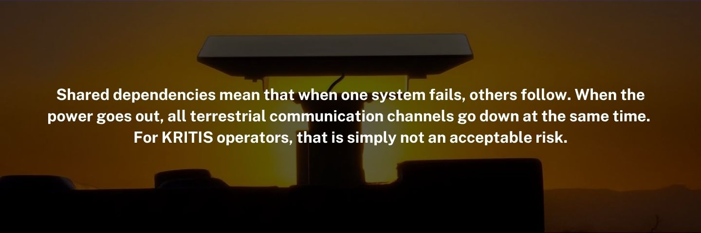 In recent years, cable breaks, flooding, attacks on telecommunications infrastructure, and power outages have shown time and again that relying solely on terrestrial communication is a serious risk — one that can lead to complete failure when it matters most.